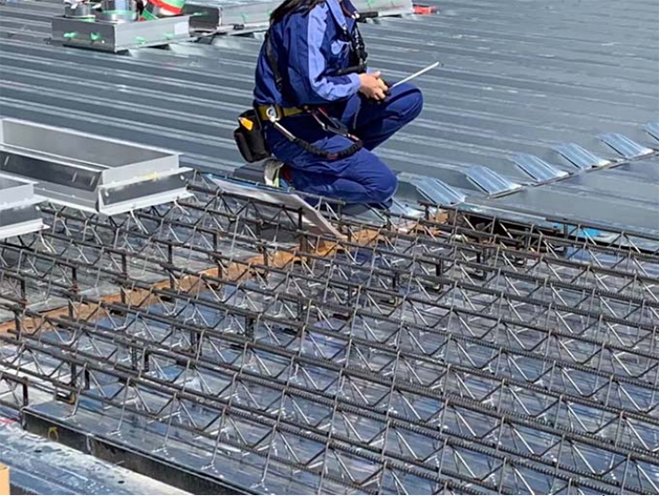 鋼筋桁架樓承板安裝現(xiàn)場↑